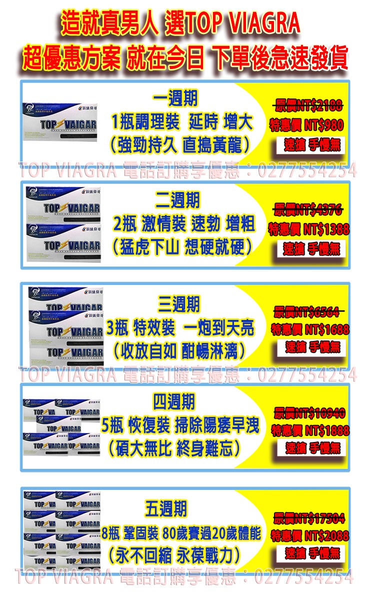 TOP VIAGRA頂級偉哥是臺灣恆泰生物科技有限公司醫療團隊;通過研究台灣男性的功能障礙;採用漢方研究的方式15年精心研製而成的,並且經臨床試驗成功才推向市場的、它是台灣本土最新的偉哥升級產品,卻比偉哥更安全,效果更顯著,比犀利士威而鋼還權威;本品已獲世界最安全最暢銷的男性營養食品稱號。