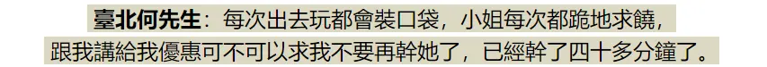一次與朋友在外品茶時,是一個非常正的正妹,情況是插入秒射,那正妹服務態度也是極其差勁,開始對我冷嘲熱諷:“喲,就這?哥哥你不行啦~”我也是始料未及,無地自容,只想躲起來。